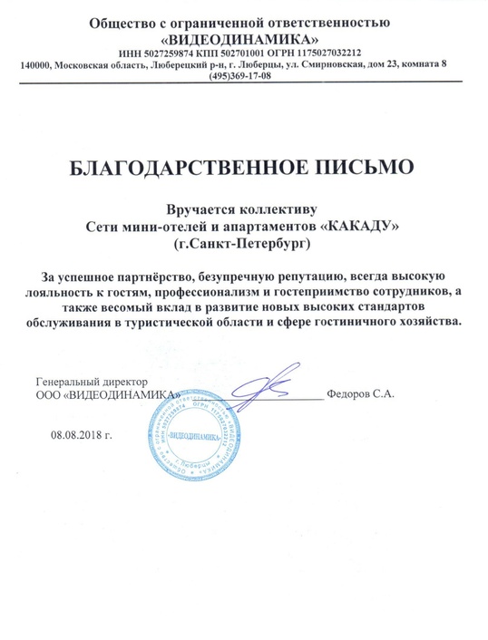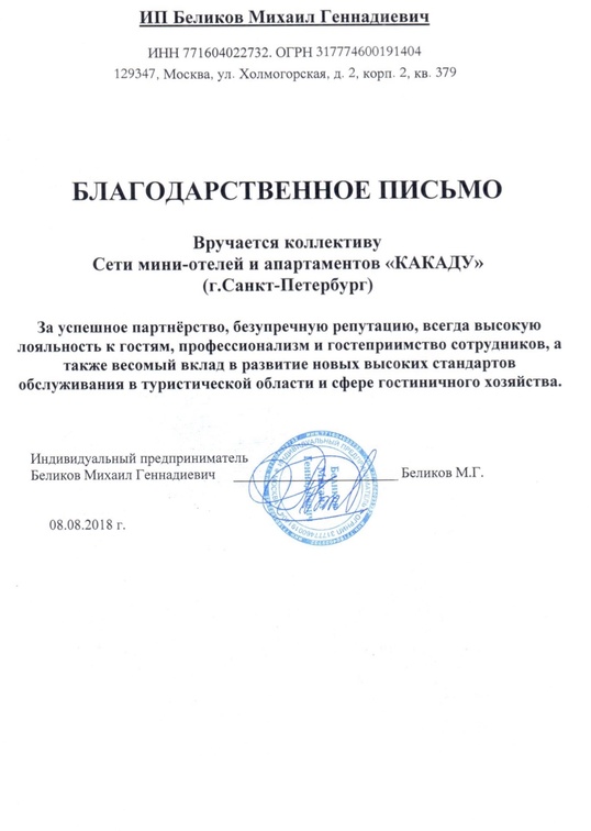 Предлагаем рассмотреть вариант сотрудничества: открытие собственного мини-отеля под брендом "КАКАДУ" в г. Санкт-Петербург или другом городе РФ.